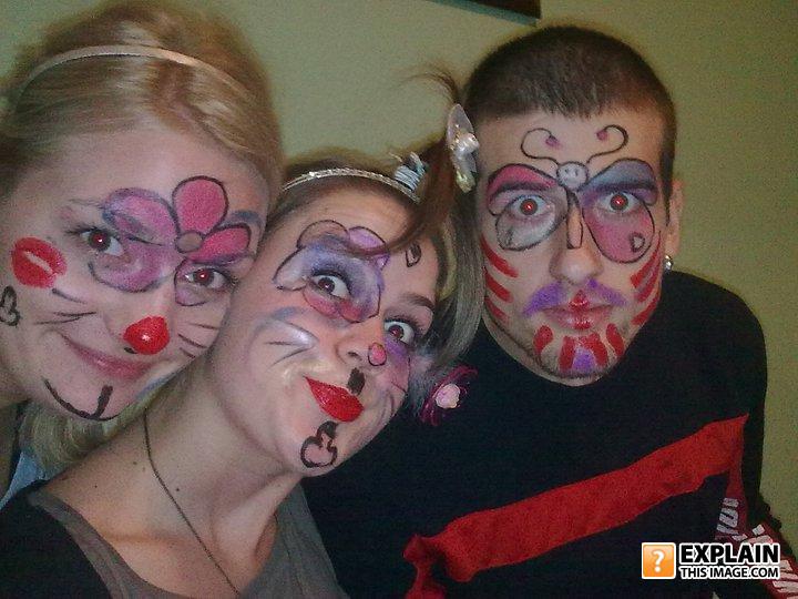 Why does the girll in the middle have a dick on her chin???