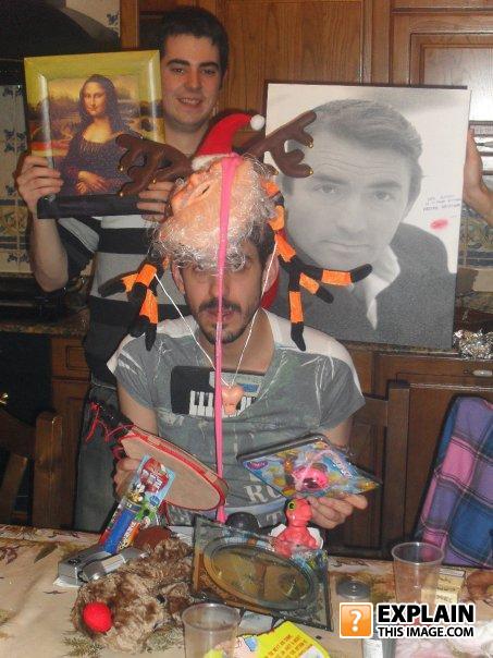 Yes, you too can post a picture to explainthisimage.com !!! Just pull together the most nonsensical arrangement of non-sensical paraphenalia that you can find into a single photo, post it online, and wait for the comments that explain your insanity!! And this guy gets an edge by working for the weird gadget store in the nearest mall, and "borrowing" as much as he can find one evening before his boss knows it's missing.